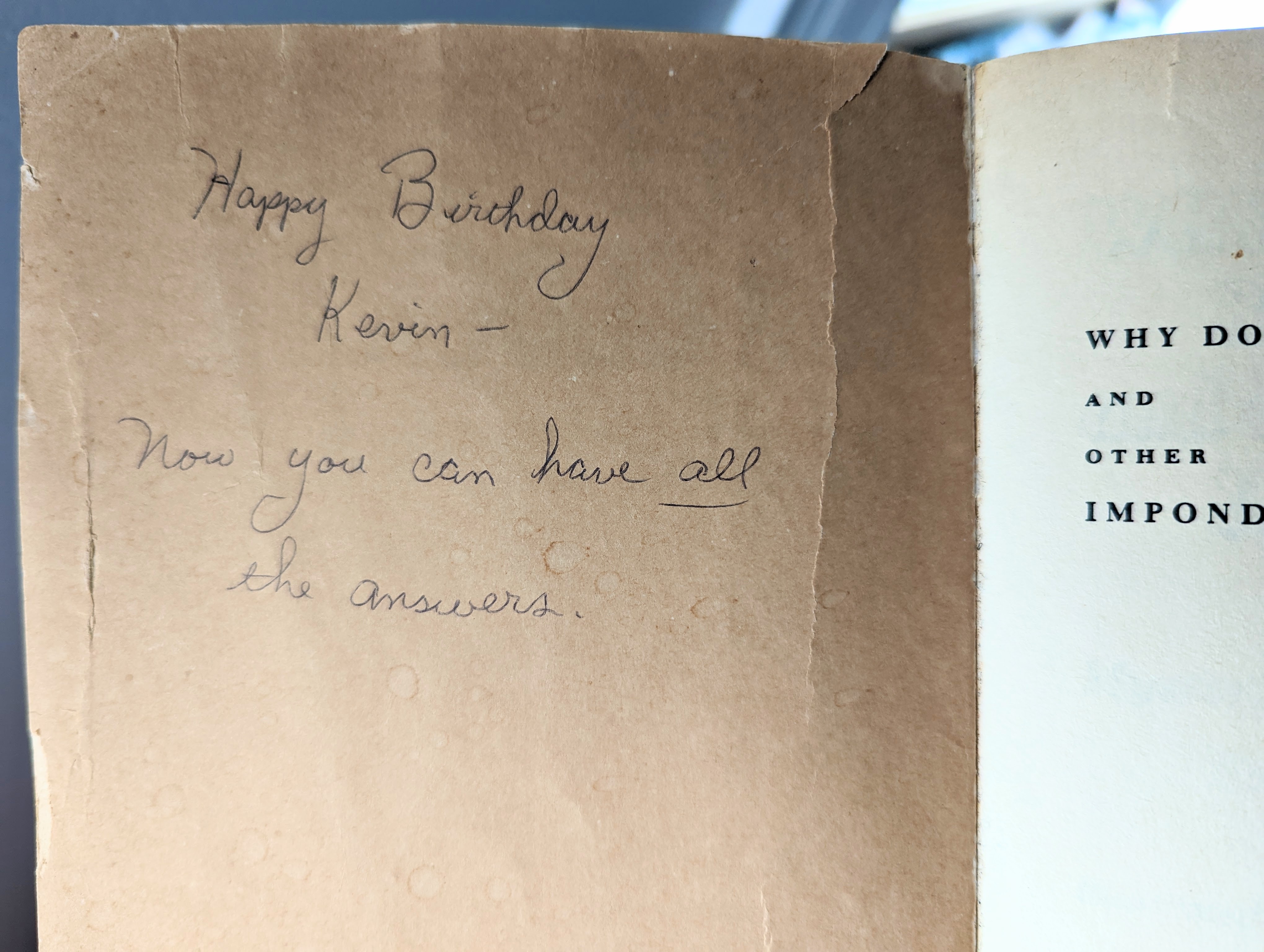 I was the kid who constantly asked “why” about anything and everything. Much to my parents’ dismay, I kept asking “why” long past the age that most kids stopped. My mom grew so weary of it she eventually bought me a book called, Why do Clocks Run Clockwise?¹ And in the inscription she wrote, “Kevin, now you can have all the answers.”